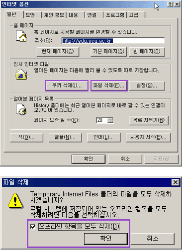 ¡Ø Internet Explorer¹öÀüÀÌ 6.XÀÏ °æ¿ì¿¡´Â <ÀÓ½ÃÀÎÅÍ³ÝÆÄÀÏ>Ç׸ñÀÇ [ÄíŰ»èÁ¦]µµ ¼±ÅÃÇÏ¿© ÄíŰ»èÁ¦ÇØ ÁÜ.
