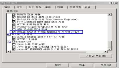 ¨è <°í±Þ> "Ž»ö"¿¡¼ "URLÀ» Ç×»ó UTF-8"·Î º¸³¿. (´Ù½Ã½ÃÀÛÇØ¾ß ÇÔ)"¿¡ üũ°¡ µÇ¾î ÀÖ´ÂÁö È®ÀÎ.