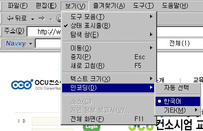 Internet ExplorerÀÇ [º¸±â] ¸Þ´º¿¡¼ ¡æ[ÀÎÄÚµù] ¼±Åà ÈÄ [ÀÚµ¿ ¼±ÅÃ]ÀÇ Ã¼Å©¸¦ ÇØÁ¦Çϰí [Çѱ¹¾î]¸¦ ¼±ÅÃÇÕ´Ï´Ù. |