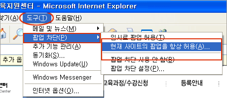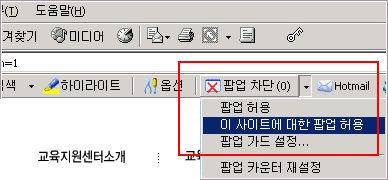 ¡¡¡¡ Åø¹Ù > ÀÌ »çÀÌÆ®¿¡ ´ëÇÑ ÆË¾÷À» Çã¿ëÀ» ¼±ÅÃÇϼ¼¿ä.